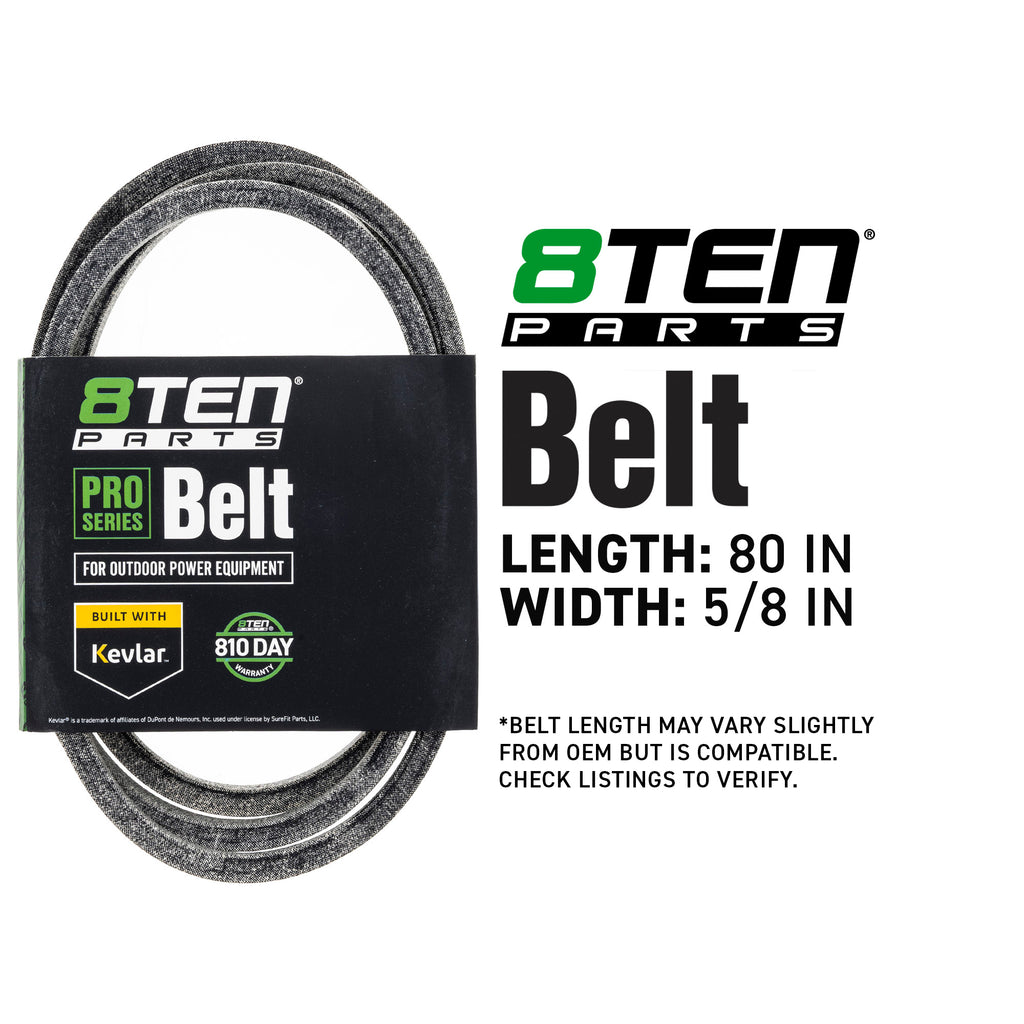 Included in This Kit: (QTY 3) 8TEN 810-CBL2379D LawnRAZOR High Lift Blade Substitute For OEM Part Numbers(s): 942-04417, 02005017, 01005336, 742-04417, 742-04278A, 942-04278A, 01005336P, 742P04278A-X, 742-04278A-X, 742-04278, 01005379 (QTY 1) 8TEN 810-CBL2963T Belt with Kevlar® Substitute For OEM Part Numbers(s): 01009787, 01009787P, TCA20750, A48081, 48081, 201010 (QTY 1) 8TEN 810-CBL2856T Belt with Kevlar® Substitute For OEM Part Numbers(s): 158818, 137153, 139573, 02000154, 02000154P, 037X63MA, 141416, OEM-139573, GW-B1741577, GW-1741577, 532180213, 1741577, 1721532SM, 161588, 1604406 (QTY 3) 8TEN 810-CSP2237N Deck Spindle Substitute For OEM Part Numbers(s): 918-3129C, 918-04394, 618-04426, 618-3129C, 918-04426, 918-3129A, 618-3129B, 918-3129B, 918-3129, 618-04394, 618-3129A, 618-3129, 918-04217, 618-04217, YS-918-3129C, 918-3190, 719-3118, 618-3190