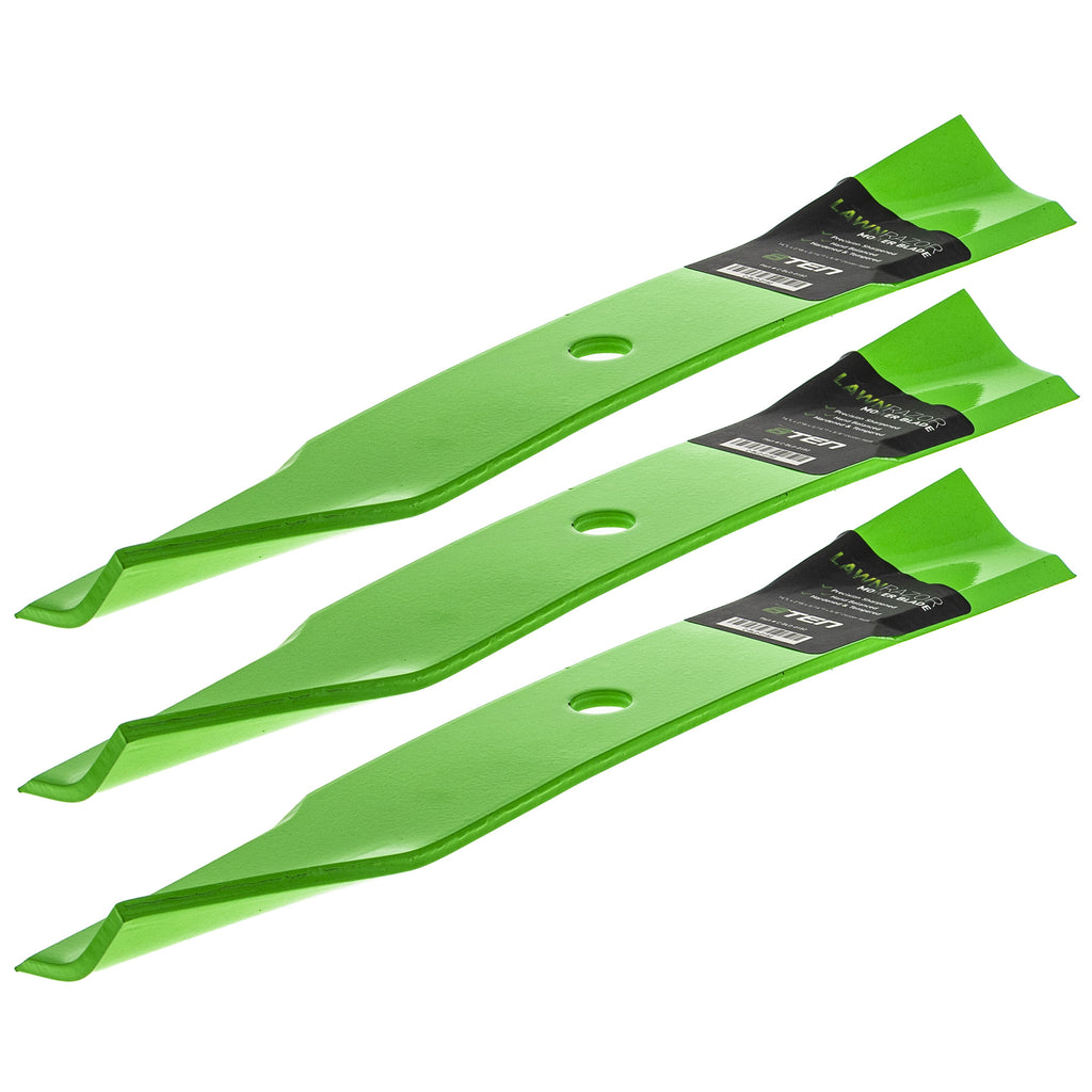 Included in This Kit: (QTY 3) 8TEN 810-CBL2304D LawnRAZOR High Lift Blade Substitute For OEM Part Numbers(s): 03498400, 14668, 8899800, 08899800, 014668, 50294, 50139, 3498451, 3498400, 173800 (QTY 1) 8TEN 810-CBL2946T Belt with Kevlar® Substitute For OEM Part Numbers(s): 103-0881, 07241800, 07200001, 103-0881-SL, 754P06135, 754-06135 (QTY 1) 8TEN 810-CID2272L Idler Pulley Substitute For OEM Part Numbers(s): 07300101, 07312500, 07312559, 7312500, 039608 (QTY 2) 8TEN 810-CID2292L Idler Pulley Substitute For OEM Part Numbers(s): 07300028, 07324100 (QTY 3) 8TEN 810-CPL2268Y Idler Pulley Substitute For OEM Part Numbers(s): 01593800 (QTY 3) 8TEN 810-CSP2244N Deck Spindle Substitute For OEM Part Numbers(s): 51510000, 61527600, 61543800